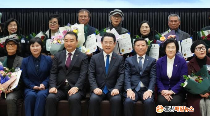 [È£³²¸ÅÀÏ´º½º = ±è¿¬Èñ ±âÀÚ] Àü¶ó³²µµ´Â 17ÀÏ ¹«¾È ³²¾Ç ½ºÄ«ÀÌ¿þµùÄÁº¥¼Ç¿¡¼­ Áö¿ª ¹®È­¿¹¼ú ¹ßÀü¿¡ Å©°Ô ±â¿©ÇÑ °ø·ÎÀÚ 4¸í¿¡°Ô Àü³²µµ ¹®È­»óÀ», ¿¹Çâ Àü³²ÀÇ ¸í¼ºÀ» µå³ôÀÎ ¿¹¼úÀÎ 12¸í¿¡°Ô Àü³²µµ ¸í¿¹¿¹¼úÀÎ ÁöÁ¤¼­¸¦ ¼ö¿©Çß´Ù.