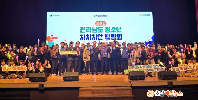 Çà»ç¿¡¼± Àü³²Áö¿ª û¼Ò³â 200¿© ¸í°ú Àü³²µµ±³À°Ã», Àü³²µµ°æÂûû °ü°èÀÚ µîÀÌ ÇÔ²²ÇÑ °¡¿îµ¥ ¸ñÆ÷¾ÖÇâÁßÇб³ ÇлýµéÀÇ ½ÄÀü °ø¿¬, û¼Ò³â ÀÚÄ¡°æÂûÇб³¿Í ÀÚÄ¡°æÂû ÇÁ·ÎÁ§Æ®ÆÀÀÇ ÇÑÇØ ¼º°ú ¹ßÇ¥ µîÀÌ ÁøÇàµÆ´Ù.
