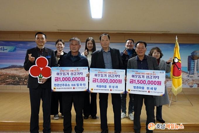 °ü»êÀ¾ ¿Áµ¿¸¶À» À§¼º·¡ ¾¾¿Í ÀÓÇϹΠ¾¾(õ°ü»êÁÖÀ¯¼Ò ´ëÇ¥), ¹æÃ̸¶À» À§¼¼·® ¾¾´Â Áö³ 18ÀÏ °ü³» ¾î·Á¿î ÀÌ¿ôÀ» À§ÇØ »ç¿ëÇØ ´Þ¶ó¸ç ¼º±Ý ÃÑ 350¸¸ ¿øÀ» °ü»êÀ¾¿¡ ±âŹÇß´Ù. À̹ø ¼º±ÝÀº À§¼º·¡ ¾¾ 100¸¸ ¿ø, ÀÓÇϹΠ¾¾ 100¸¸ ¿ø, À§¼¼·® ¾¾ 150¸¸ ¿øÀ¸·Î ¸¶·ÃµÆ´Ù.