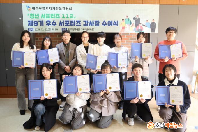 ¾ÈÁø ±¤ÁÖÀÚÄ¡°æÂûÀ§¿øÀåÀº ¡°Ã»³â ¼Æ÷ÅÍÁî112ÀÇ È°µ¿ÀÌ ÀÚÄ¡°æÂû Á¤Ã¥¿¡ ´ëÇÑ ½Ã¹Î ÀÎÁöµµ Çâ»ó°ú Á¤Ã¥ È«º¸¿¡ ½ÇÁúÀûÀÎ È¿°ú°¡ ÀÖ´Ù´Â ¼³¹®Á¶»ç °á°ú·Î È®Àεƴ١±¸ç ¡°¾ÕÀ¸·Îµµ Áö¿ª û³âµéÀÌ Á¤Ã¥ È«º¸ÀÇ ÁÖü·Î Âü¿©ÇÒ ¼ö ÀÖµµ·Ï Áö¿øÀ» ¾Æ³¢Áö ¾Ê°Ú´Ù¡±°í ¸»Çß´Ù.