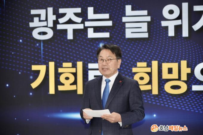 ° ½ÃÀåÀº ¿Ã ÇÑ ÇØ µ¿¾È ±¤ÁÖ¿¡¼ÀÇ °áÁ¤ÀûÀÎ ¼ø°£µéÀ» »çÁø°ú ÇÔ²² ¼Ò°³ÇÏ¸ç ¹ÎÁÖÁÖÀÇ ¼öÈ£, ÇØ¹¬Àº Áö¿ªÇö¾È ÇØ°á, µµ½Ã º¯È, ¹Ì·¡ ºñÀü±îÁö ½ÃÁ¤ Àü¹ÝÀÇ ¸Þ½ÃÁö¸¦ ¾ÐÃàÀûÀ¸·Î ¼³¸íÇß´Ù.