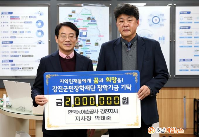 ¹ÚÅÂÁØ Çѱ¹³ó¾îÃ̰ø»ç °ÁøÁö»ç Áö»çÀåÀÌ 2¹é¸¸ ¿ø, À±ÁØÈ£ Àü³²¹®È°ü±¤Çؼ³»çÇùȸ °Áø±ºÁöȸ À±ÁØÈ£ ȸÀå, Á¶¼ºÀº Àü(îñ) ³ªÁֽà ³ó¾÷±â¼ú¼¾ÅÍ ¼ÒÀå, Á¶Àμ® ±ºµ¿ ³²¹Ì¸¤»ç dz¿ä·Î¿î ÆíÀÇÁ¡ ´ëÇ¥, ±èº´¸² µµ¾Ï¸é ÀÌÀå´Ü ´ÜÀå, ±èÇÑÃá Ç÷£¿£Áö´Ï¾î¸µ(ÁÖ) ´ëÇ¥°¡ °¢ 1¹é¸¸ ¿øÀÇ ÀåÇбÝÀ» °Áø±º¹ÎÀåÇÐÀç´Ü(°Áø¿ø)¿¡ ±âŹ Çß´Ù.