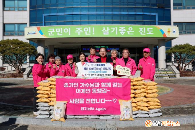 ¼Û°¡ÀÎ °ø½Ä ÀÀ¿ø ¸ðÀÓ(ÆÒŬ·´)ÀÎ ¡®°æ±â³²ºÎ ¾î°ÔÀΡ¯Àº ÃÖ±Ù Ãë¾à°èÃþ Áö¿øÀ» À§ÇØ 300¸¸ ¿ø »ó´çÀÇ ¹é¹Ì 100Æ÷¸¦ Áøµµ±º¿¡ ±âŹ Çß´Ù.