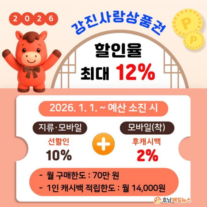 2026³â 1¿ùºÎÅÍ ÇÒÀÎÀ² 12%°¡ Àû¿ëµÇ¸ç, ¼±ÇÒÀÎ 10%¿¡ ÈÄij½Ã¹é 2%·Î ¿î¿µµÈ´Ù. ÈÄij½Ã¹é 2%´Â µµºñ·Î Áö¿øµÇ¸ç, Áö¿øµÇ´Â µµºñ´Â ÃÑ 2¾ï 4õ 8¹é¸¸ ¿øÀ¸·Î ¿¹»ê ¼ÒÁø ½Ã Á¾·áµÈ´Ù.