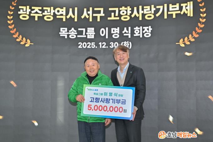 [È£³²¸ÅÀÏ´º½º = ±è¿¬Èñ ±âÀÚ] ±¤ÁÖ±¤¿ª½Ã ¼­±¸(±¸Ã»Àå ±èÀ̰­)´Â ¸ñ¼Û±×·ì À̸í½Ä ȸÀåÀÌ Áö¿ª ¹ßÀü°ú Ãë¾à°èÃþ Áö¿øÀ» À§ÇÑ °íÇâ»ç¶û±âºÎ±Ý 500¸¸¿øÀ» ±âŹÇß´Ù°í 30ÀÏ ¹àÇû´Ù.