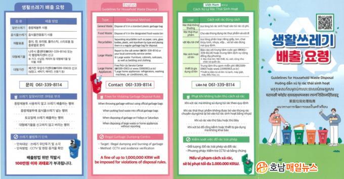 ³ªÁÖ½Ã(½ÃÀå À±º´ÅÂ)´Â ¾ð¾îÀ庮À¸·Î »ýȰÆó±â¹° ¹èÃâ¿¡ ¾î·Á¿òÀ» °Þ´Â ¿Ü±¹ÀÎÀ» ´ë»óÀ¸·Î ÀûÁ¤ ¹èÃâ ¹æ¹ýÀ» ¾È³»Çϱâ À§ÇØ Á¢ÀÌ½Ä ¸®Çø´ ÇüÅÂÀÇ ´Ù±¹¾î È«º¸¹°À» Á¦ÀÛÇß´Ù°í 2ÀÏ ¹àÇû´Ù.