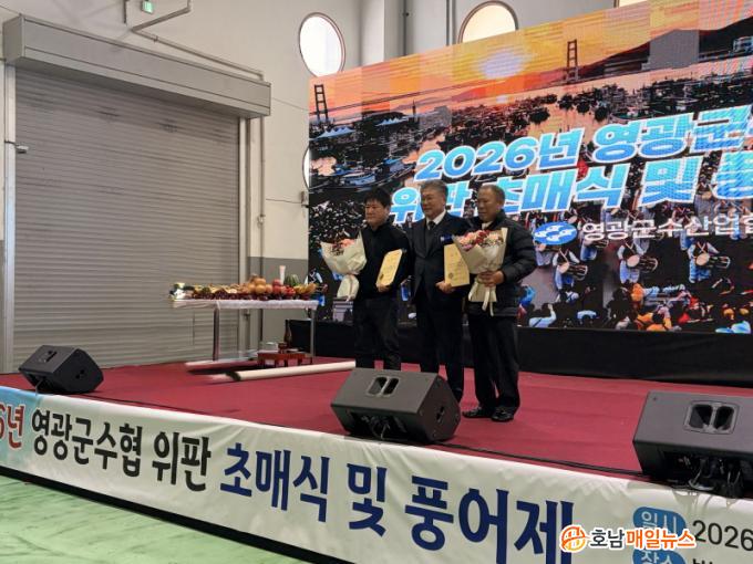 µ¿Á¶ÇÕÀå µî 100¿© ¸íÀÌ Âü¼®ÇÑ °¡¿îµ¥ ¼ö»ê¾÷ÀÇ ¹ø¿µ°ú ¾î¾÷ÀÎÀÇ ¾ÈÀüÁ¶¾÷À» ±â¿øÇÏ´Â ¶æ±íÀº ½Ã°£À» °¡Á³´Ù. ƯÈ÷ À̳¯ Çà»ç¿¡´Â ¼º½ÇÇÑ Á¶¾÷°ú Áö¿ª ¼ö»ê¾÷ ¹ßÀü¿¡ ±â¿©ÇÑ ¾î¾÷ÀÎ 2¸í¿¡°Ô ±º¼ö ǥâÀ» ¼ö¿©ÇÏ¿©, ÇöÀå ¾î¾÷Àεé·ÎºÎÅÍ Å« ¹Ú¼ö¸¦ ¹Þ¾Ò´Ù.
