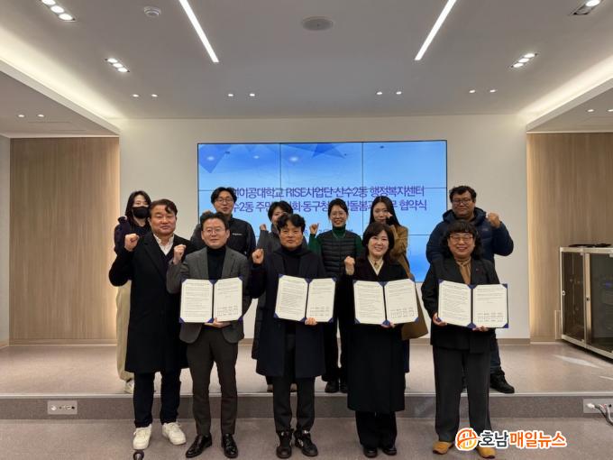 ÀÌµé ±â°üÀº ¡ã»ê¼ö2µ¿ ÁֹΠº¹Áö ÁõÁøÀ» À§ÇÑ »ó»ý Çù·Â»ç¾÷ ¹ß±¼ ¡ãRISE »ç¾÷ ´ÜÀ§°úÁ¦ ÇÁ·Î±×·¥ °³¹ß ¹× ¿î¿µ ¡ãÁö¿ª»çȸ Àη ¾ç¼º ±³À°À» À§ÇÑ °Å¹ö³Í½º ±¸Ãà ¡ãÃë¾à°èÃþ °Ç°¡¤È¯°æ¡¤¾ÈÀü µî Çù·Â»ç¾÷ ¹ß±¼¿¡ ±ä¹ÐÈ÷ Çù·ÂÇϱâ·Î Çß´Ù. ƯÈ÷ ´ëÇÐÀÇ ¿ì¼öÇÑ ÀÎÀû¡¤¹°Àû ÀÚ¿øÀ» Áö¿ª»çȸ¿Í °øÀ¯Çϰí, Áö¿ª Çö¾È ÇØ°áÀ» À§ÇÑ ½Ç¹«ÇùÀÇȸ¸¦ ±¸¼ºÇØ »ç¾÷ÀÇ ½ÇÇà·ÂÀ» ³ôÀÏ °èȹÀÌ´Ù.