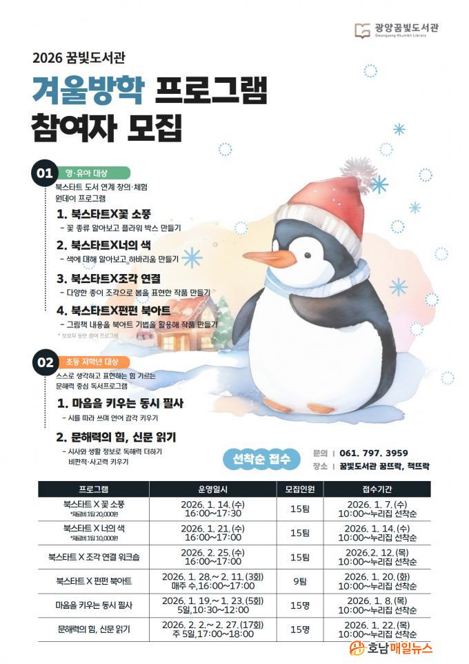 ±¤¾ç½Ã °ü°èÀÚ´Â ¡°°Ü¿ï¹æÇÐ µ¿¾È ¾ÆÀ̵éÀÌ Ã¥°ú ´õ¿í Ä£¼÷ÇØÁö°í, ³îÀÌó·³ Áñ±â¸ç µ¶¼ °æÇèÀ» È®ÀåÇÒ ¼ö ÀÖµµ·Ï ÇÁ·Î±×·¥À» ÁغñÇß´Ù¡±¸ç ¡°Ã¼Çè°ú Àб⸦ ±ÕÇü ÀÖ°Ô °áÇÕÇÑ À̹ø ÇÁ·Î±×·¥ÀÌ ¾î¸°À̵éÀÇ ¼ºÀå¿¡ µµ¿òÀÌ µÇ±æ ¹Ù¶õ´Ù¡±°í ¸»Çß´Ù.