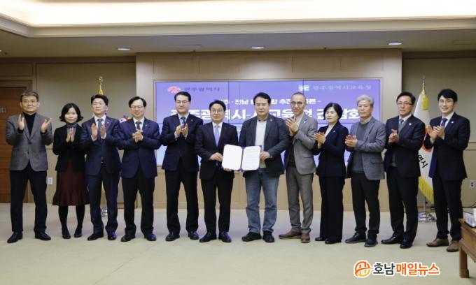 ÀÌÁ¤¼± ±¤Áֽñ³À°°¨°ú °±âÁ¤ ±¤ÁÖ½ÃÀåÀº 7ÀÏ ½Ãû ºñÁî´Ï½º·ë¿¡¼ ¸¸³ª ¡®±¤ÁÖ¡¤Àü³² ´ëÅëÇÕ ¼º°ø ¹× ±³À° Çõ½ÅÀ» À§ÇÑ °øµ¿ÇÕÀǹ®¡¯¿¡ ¼¸íÇß´Ù.