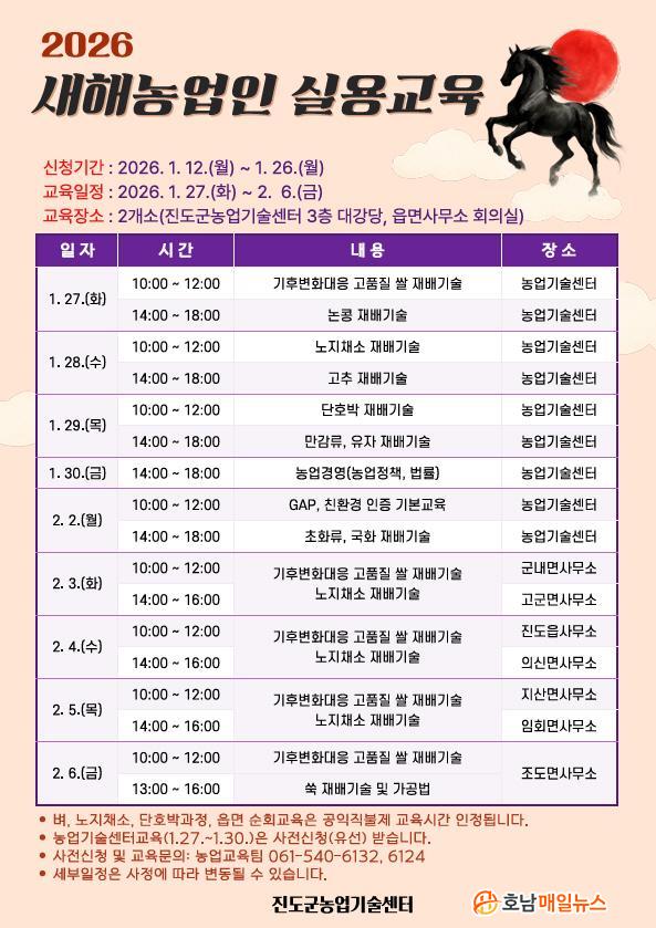 ±³À° ÀÏÁ¤Àº Áøµµ±º³ó¾÷±â¼ú¼¾ÅÍ ´©¸®Áý¿¡¼ È®ÀÎÇÒ ¼ö ÀÖ°í, 26ÀϱîÁö ÀüÈ µîÀ¸·Î ½ÅûÇÒ ¼ö ÀÖÀ¸¸ç, ÀÚ¼¼ÇÑ ³»¿ëÀº Áøµµ±º ³óÃÌȰ·Â°ú ³ó¾÷±³À°ÆÀ(¢Ï540-6132)¿¡ ¹®ÀÇÇÏ¸é ¾È³»¹ÞÀ» ¼ö ÀÖ´Ù.