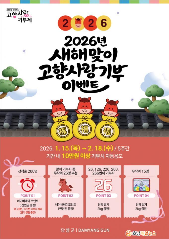 ¸ÕÀú, »õÇØ ±âºÎ Âü¿© ºÐÀ§±â Á¶¼ºÀ» À§ÇØ À̺¥Æ® ±â°£ ³» ¼±Âø¼ø ±âºÎÀÚ 200¸í¿¡°Ô ³×À̹öÆäÀÌ Æ÷ÀÎÆ® 5õ ¿ø±ÇÀ» ÁõÁ¤ÇÑ´Ù. ¶ÇÇÑ 2026³â ºÓÀº ¸»ÀÇ ÇØ¸¦ ±â³äÇØ ¸»¶ì ±âºÎÀÚ Áß 26¸íÀ» ¹«ÀÛÀ§·Î Ãß÷ÇÏ¿© ³×À̹öÆäÀÌ Æ÷ÀÎÆ® 1¸¸ ¿ø±ÇÀ» Áö±ÞÇÔÀ¸·Î½á ±âºÎ Âü¿©ÀÇ Áñ°Å¿òÀ» ´õÇÒ °èȹÀÌ´Ù.