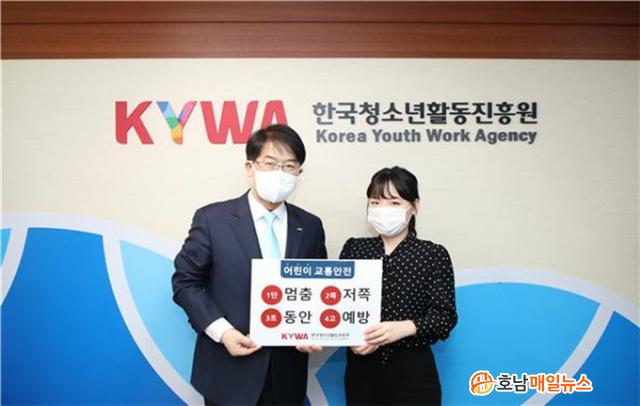 ÇÑÆí, À̱¤È£ ÀÌ»çÀåÀº ¡°À̹ø 縰Áö¸¦ ÅëÇØ ¾î¸°ÀÌ ±³Åë¾ÈÀü ¹®È°¡ ´õ¿í È®»êµÇ±â¸¦ ¹Ù¶ó¸ç, Çѱ¹Ã»¼Ò³âȰµ¿ÁøÈï¿øÀº ¾ÈÀüÇÑ Ã»¼Ò³âȰµ¿ È®»ê µî û¼Ò³âȰµ¿ ¾ÈÀüÁö¿ø °È¸¦ À§ÇØ ÃÖ¼±À» ´ÙÇϰڴÙ.¡±°í ÀüÇß´Ù.