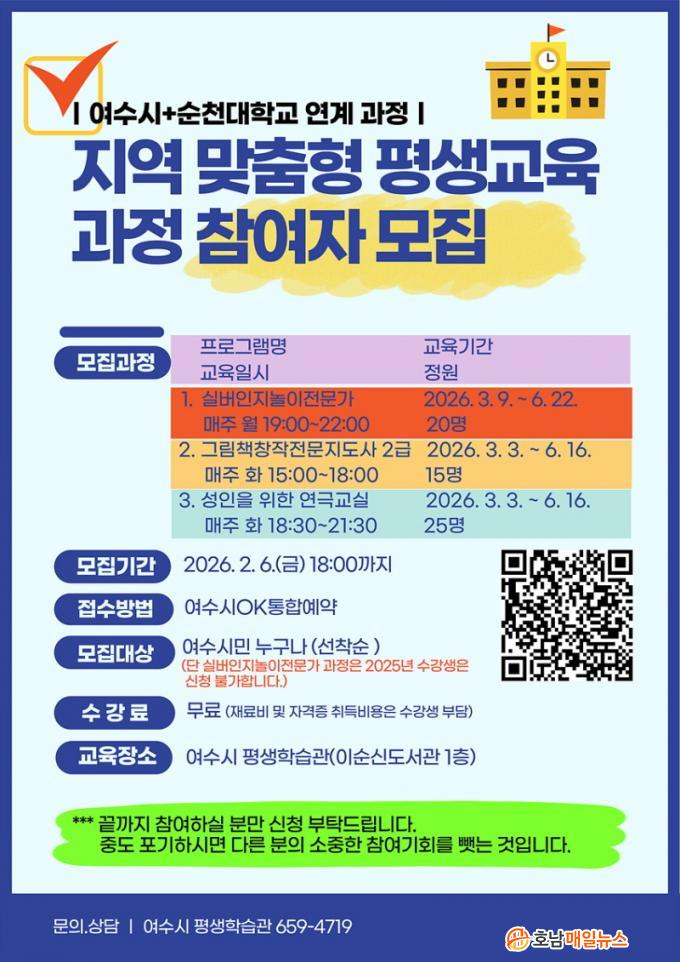 ¿©¼ö½Ã °ü°èÀÚ´Â ¡°À̹ø Æò»ý±³À°°úÁ¤Àº ´ëÇаú Áö¿ªÀÌ Çù·ÂÇØ ½Ã¹ÎÀÇ »î¿¡ ½ÇÁúÀûÀ¸·Î µµ¿òÀÌ µÇ´Â ±³À°À» Á¦°øÇÏ´Â µ¥ Àǹ̰¡ ÀÖ´Ù¡±¸ç ¡°¸¶Áö¸·±îÁö ¼º½ÇÈ÷ Âü¿©ÇÒ ¼ö ÀÖ´Â ½Ã¹ÎµéÀÇ ¸¹Àº °ü½É°ú Âü¿©¸¦ ¹Ù¶õ´Ù¡±°í ¹àÇû´Ù.