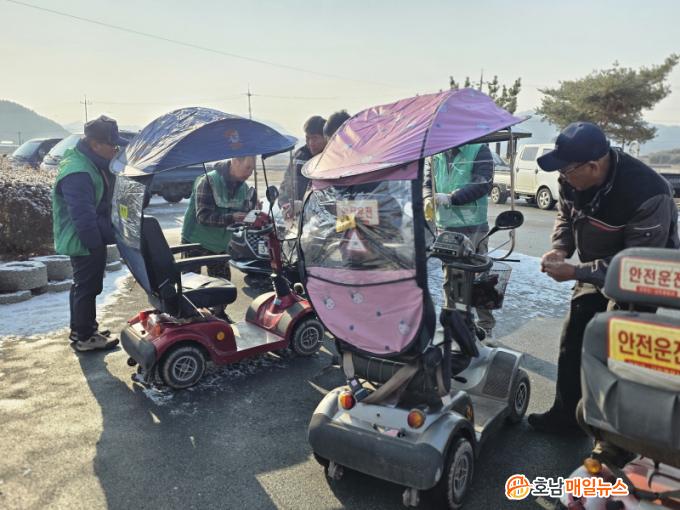 º´¿µ¸é Áö¿ª»çȸº¸ÀåÇùÀÇü(°øµ¿À§¿øÀå ¾çÀºÈñ‧±è¿ë°ü)´Â º´¿µ»õ¸¶À»ÇùÀÇȸ(ȸÀå ¼Û¿Áö)¿Í ÇÔ²² Àüµ¿Â÷¸¦ ÀÌ¿ëÇÏ´Â ¾î¸£½ÅµéÀÇ ¾ÈÀüÇÑ À̵¿À» µ½±â À§ÇØ Àüµ¿Â÷ Â÷¾ç¸· ¼³Ä¡ Áö¿ø»ç¾÷À» ÃßÁøÇß´Ù. À̹ø »ç¾÷Àº Àüµ¿Â÷¸¦ ÀÌ¿ëÇÏ´Â ¾î¸£½Å 45¸íÀ» ´ë»óÀ¸·Î ÁøÇàµÆ´Ù.
