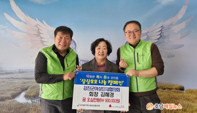 À̹ø ¸±·¹ÀÌ¿¡´Â ±èÇý°æ °Áø±º¿©¼º´ÜüÇùÀÇȸ ȸÀåÀÌ 2È£·Î, ¹Ú´ëÇö ¼ÛÁ¤¸¶À» ÀÌÀåÀÌ 3È£·Î Âü¿©ÇØ °¢°¢ 50¸¸ ¿ø¾¿ ÃÑ 100¸¸ ¿øÀÇ ¼º±ÝÀ» ±âŹÇß´Ù.
