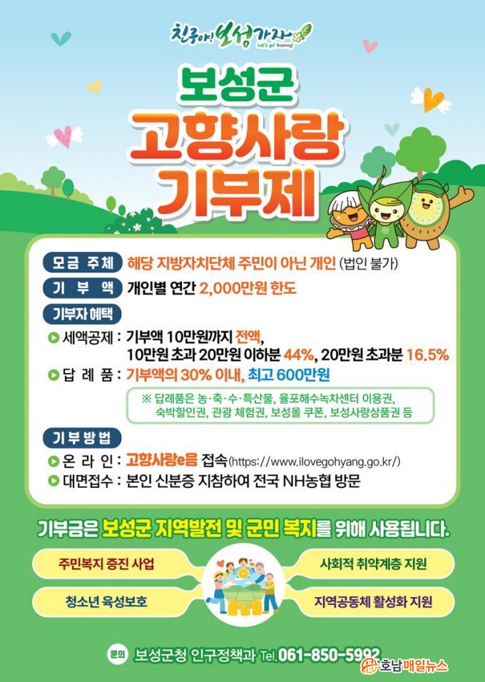 ¡®°íÇâ»ç¶û±âºÎÁ¦¡¯´Â °³ÀÎÀÌ ÁÖ¼ÒÁö ¿Ü ÁöÀÚü¿¡ ¿¬°£ ÃÖ´ë 2,000¸¸ ¿ø±îÁö ±âºÎÇÒ ¼ö ÀÖ´Â Á¦µµ·Î, ±âºÎÀÚ´Â ¼¼¾×°øÁ¦ ÇýÅðú ÇÔ²² Áö¿ª Ư»ê¹° µî ´ä·ÊǰÀ» ¹ÞÀ» ¼ö ÀÖ´Ù. ±âºÎ±ÝÀº Áö¿ªÀÇ º¹Áö ÁõÁø°ú ÁֹΠ»îÀÇ Áú Çâ»óÀ» À§ÇÑ ´Ù¾çÇÑ »ç¾÷¿¡ Ȱ¿ëµÈ´Ù.