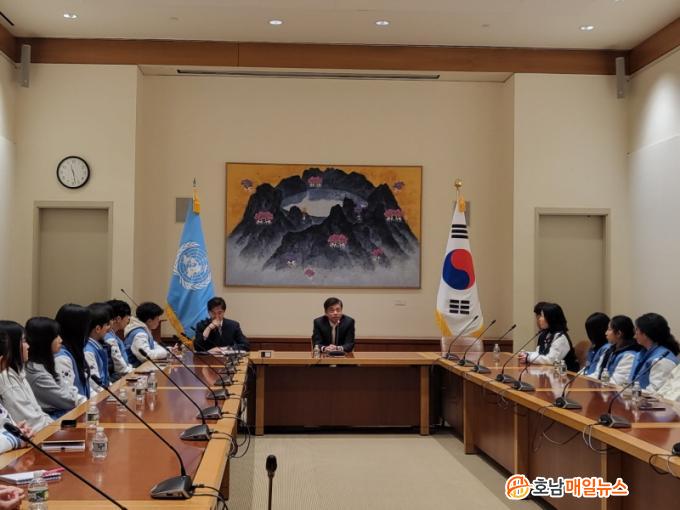 À̹ø ¹æ¹®Àº Àü³²Çлý°ø°ø¿Ü±³½ºÄð ±¹¿ÜȰµ¿ÀÇ ÇÙ½É ÀÏÁ¤ Áß Çϳª·Î, ÇлýµéÀº À¯¿£À» ã¾Æ ±¹Á¦±â±¸ÀÇ ¿ªÇÒ°ú ±¹Á¦»çȸÀÇ ÁÖ¿ä Çö¾ÈÀ» »ìÆìº¸°í, Â÷ÁöÈÆ ´ë»ç·ÎºÎÅÍ À¯¿£ÀÇ ¿ªÇÒ°ú ¿Ü±³ ÇöÀå¿¡ ´ëÇÑ ¼³¸íÀ» µè´Â ½Ã°£À» °¡Á³´Ù.