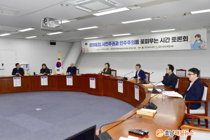 ƯÈ÷, ÀÇȸ ±â´ÉÀ» °ÈÇÏ°í ±³À°ÀÚÄ¡¸¦ ±¸ÇöÇÏ´Â µî µÎ ÇàÁ¤ÅëÇÕÀÌ ÇÕ¸ñÀû¼ºÀ» °®±â À§Çؼ´Â ½ÇÁúÀûÀÎ Á¦µµ¸¦ ¼³°èÇØ¾ß ÇÑ´Ù´Â ÀǰßÀÌ´Ù. 28ÀÏ ±¤ÁÖ±¤¿ª½ÃÀÇȸ´Â ±¤ÁֽùδÜüÇùÀÇȸ¿Í °øµ¿À¸·Î ½ÃÀÇȸ 5Ãþ ¿¹»ê°á»êƯº°À§¿øÈ¸ ȸÀǽǿ¡¼ ¡®ÇàÁ¤ÅëÇÕ, ½Ã¹ÎÁֱǰú ¹ÎÁÖÁÖÀǸ¦ ²ÉÇÇ¿ì´Â ½Ã°£ Åä·Ðȸ¡¯¸¦ °³ÃÖÇß´Ù.