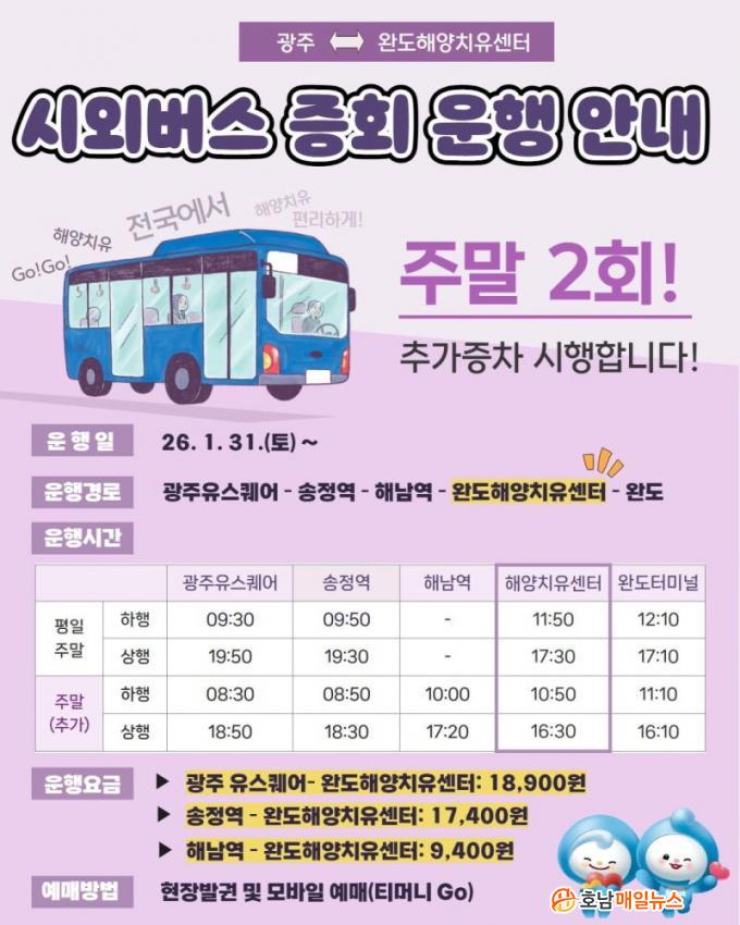 ÁÖ¸» Ãß°¡ ³ë¼±Àº Ãâ¹ß ½Ã°£À» 1½Ã°£ ¾Õ´ç°Ü ¿îÇàÇÑ´Ù. ¿ä±ÝÀº ±âÁ¸°ú µ¿ÀÏÇÏ¸ç ±¤ÁÖ(À¯½ºÄù¾î)¡ê¿ÏµµÇؾçÄ¡À¯¼¾ÅÍ 18,900¿ø, ±¤ÁÖ ¼ÛÁ¤¿ª¡ê¿ÏµµÇؾçÄ¡À¯¼¾ÅÍ 17,400¿ø, ÇØ³²¿ª¡ê¿ÏµµÇؾçÄ¡À¯¼¾ÅÍ 9,400¿øÀÌ´Ù.
