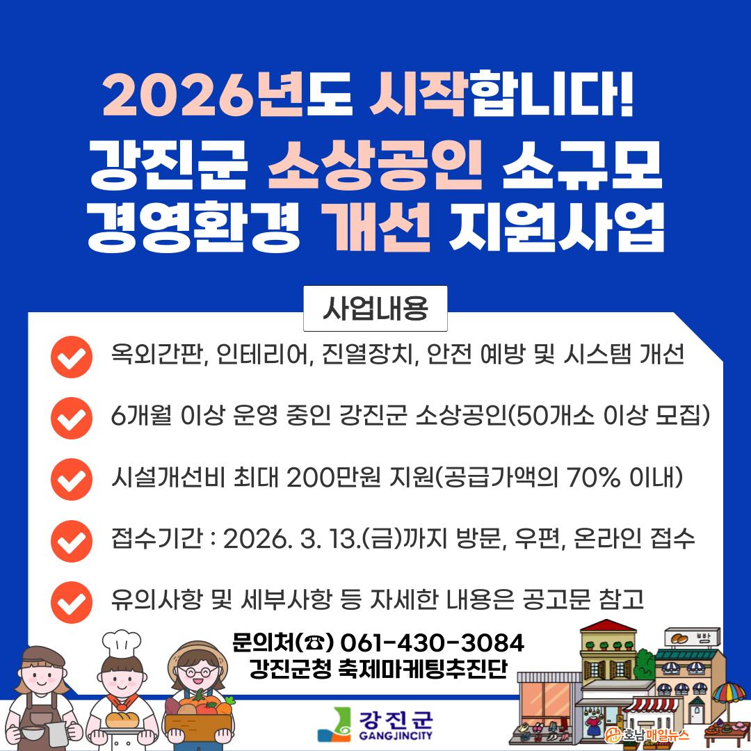 Áö¿ø Ç׸ñÀº ½ÇÁ¦ ¿µ¾÷ȯ°æ °³¼± È¿°ú°¡ Å« ºÐ¾ß·Î ÇÑÁ¤µÈ´Ù. ÁÖ¿ä Áö¿ø ³»¿ëÀº ä³Î°£ÆÇ¡¤LED°£ÆÇ µî ¿Á¿Ü°£ÆÇ ±³Ã¼, ³»ºÎ ÀÎÅ׸®¾î ¹× Á¶¸í °³¼±, »óǰ Áø¿´ë¡¤ÆÇ¸Å´ë ¼³Ä¡, ¼ÒÈ¡¤¹æ¹ü ¼³ºñ¿Í CCTV(±¹»ê), ¼öÇØ ¿¹¹æ¿ë ¹°¸·ÀÌÆÇ ¼³Ä¡ µîÀÌ´Ù. ¹Ý¸é ´Ü¼ø û¼Ò, ¼Ò¸ðǰÀ̳ª Áý±â·ù, Áß°íÀåºñ, ·»Å»ºñ¿ë, PC¡¤TV¡¤¿¡¾îÄÁ µî °¡ÀüÁ¦Ç°°ú ÁÖ¾÷Á¾°ú ¹«°üÇÑ ¹°Ç°Àº Áö¿ø ´ë»ó¿¡¼ Á¦¿ÜµÈ´Ù.
