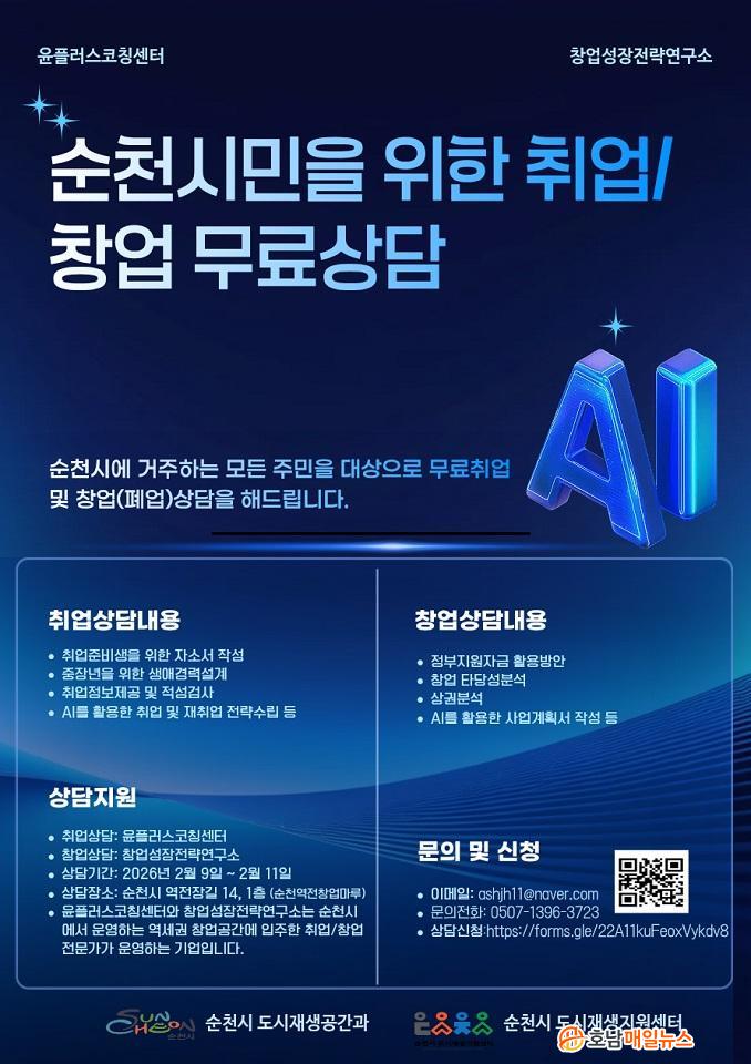 À̹ø »ó´ãÀº ¿À´Â 9ÀϺÎÅÍ 11ÀϱîÁö 3Àϰ£, ¼øÃµ¿ªÀü â¾÷¸¶·ç(¿ªÀüÀ屿 14) 1Ãþ¿¡¼ ÁøÇàµÇ¸ç, Áö¿ªÁֹΰú (¿¹ºñ)â¾÷ÀÚ, û³â, Çлý µîÀ» ´ë»óÀ¸·Î ¸ÂÃãÇü Àü¹®»ó´ãÀ» Á¦°øÇÑ´Ù.
