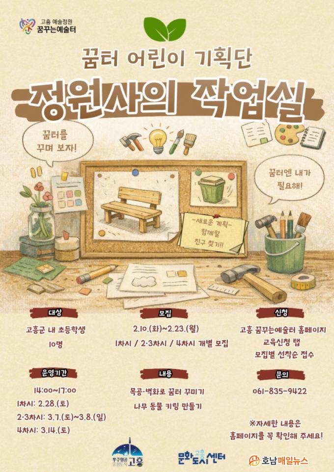¡¸Á¤¿ø»çÀÇ ÀÛ¾÷½Ç¡¹Àº °íÈï ¿¹¼úÁ¤¿ø ²Þ²Ù´Â¿¹¼úÅÍÀÇ ÁÖ¿ä ÀÌ¿ëÀÚÀÎ ÃʵîÇлýµéÀÌ ¿¹¼úÁ¤¿øÀ» °¡²Ù´Â ¡®Á¤¿ø»ç¡¯°¡ µÇ¾î ¸ñ°ø°ú ¹Ì¼ú Ȱµ¿À» ÅëÇØ °ø°£À» Á÷Á¢ °³¼±ÇØ ³ª°¡´Â Âü¿©Çü ¹®È¿¹¼ú±³À° ÇÁ·Î±×·¥ÀÌ´Ù.
