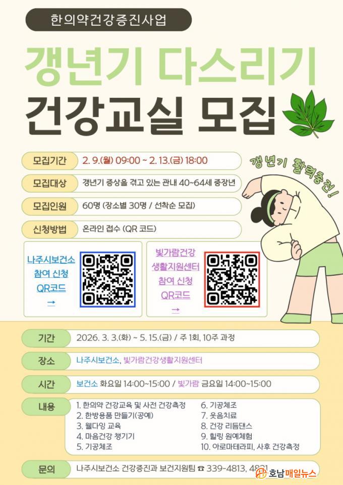 ¸ðÁý ´ë»óÀº °»³â±â Áõ»óÀ» °Þ°í ÀÖ´Â 40~64¼¼ ÁßÀå³â 60¸íÀ¸·Î ¿î¿µ Àå¼Òº°·Î °¢ 30¸í¾¿ ¼±Âø¼ø ¸ðÁýÇÑ´Ù. Âü¿© ½ÅûÀº ¿À´Â 9ÀϺÎÅÍ 13ÀϱîÁö 5Àϰ£ ÁøÇàµÇ¸ç QRÄÚµå ¶Ç´Â URLÀ» ÅëÇÑ ¿Â¶óÀÎ Á¢¼ö¸¸ °¡´ÉÇÏ´Ù.