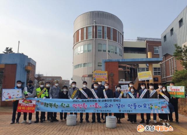 ¾ÆÄ§ 8½Ã 20ºÐ ÇлýµéÀÇ µî±³ ½Ã°£¿¡ ¸ÂÃß¾î ³ªÁÖ±³À°Áö¿øÃ» ±è¿µ±æ ±³À°ÀåÀ» ºñ·ÔÇØ ±³À°Áö¿ø°ú¿Í Çб³Áö¿ø¼¾ÅÍ, ³ªÁÖ°æÂû¼, ºû°¡¶÷ÃʵîÇб³ °ü°èÀÚ ¹× 6Çгâ ÇлýȸÀå´Ü µî 30¿©¸íÀÇ Áö¿ª»çȸ À¯°ü±â°ü°ú ÇлýµéÀÌ ÇÔ²² ÇÇÄϰú Çö¼ö¸· µîÀ» Ȱ¿ëÇØ 'º¸ÇàÁß¿¡ ½º¸¶Æ®Æù ¾ÈÇϱâ', '¾î¸°ÀÌ º¸È£±¸¿ª ÁÖ¡¤Á¤Â÷ ¾ÈµÅ¿ä!', '¸ØÃß°í, »ìÇǰí, È®ÀÎÇÏ°í °Ç³Ê¿ä!'µî ±³Åë¾ÈÀü°ú 'Çб³Æø·Â zero'µî Çб³Æø·Â ¿¹¹æ È«º¸ Ä·ÆäÀÎÀ» ÆîÃÆ°í µî±³ÇÏ´Â Çлýµé¿¡°Ô ¹æ¿ª ¸¶½ºÅ©¸¦ ¹èºÎÇÏ¸é¼ Ã¶ÀúÇÑ Äڷγª19 ¿¹¹æ ¹æ¿ª ¼öÄ¢ Áؼö¸¦ ´çºÎÇÏ¿´´Ù.