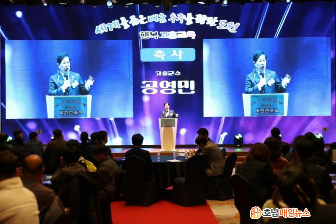À̾î Àü¶ó³²µµ ±³À°°¨, °íÈﱺ¼ö, °íÈﱺÀÇȸ ÀÇÀå, °íÈï±³À°Áö¿øÃ» ±³À°ÀåÀÌ ÇÔ²²ÇÏ´Â ¡®°íÈï±³À° ºñÀü ½Çõ ´ÙÁü °áÀÇ(°øµ¿ ´ÙÁü ÆÛÆ÷¸Õ½º)¡¯°¡ ÁøÇàµÆ´Ù. Âü¼®ÀÚµéÀº ºñÀü ½Çõ¿¡ ´ëÇÑ °øµ¿ ÀÇÁö¸¦ °ø½ÄÀûÀ¸·Î ¼±¾ðÇϰí, Áö¿ª°ú µ¿ÇàÇÏ¸ç °íÈï±³À°ÀÇ »õ·Î¿î Ãâ¹ßÀ» ÇÔ²² ¿¾î°¡°Ú´Ù´Â ¶æÀ» ¸ð¾Ò´Ù.