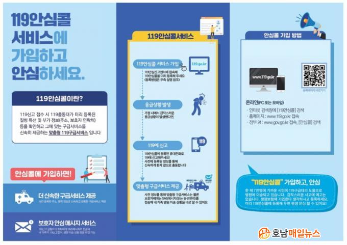 ¡®119¾È½ÉÄÝ¡¯ ¼ºñ½º´Â ´©¸®Áý(u119.nfa.go.kr)¿¡¼ °£ÆíÇÏ°Ô °¡ÀÔÇÒ ¼ö ÀÖÀ¸¸ç, °¡±î¿î ¼Ò¹æ¼¸¦ ¹æ¹®ÇØ µî·ÏÇÒ ¼öµµ ÀÖ´Ù. º»ÀλӸ¸ ¾Æ´Ï¶ó º¸È£ÀÚ°¡ ´ë¸® µî·ÏÇÒ ¼ö ÀÖ°í, ÇÑ ¹ø µî·ÏÇϸé Àü±¹ ¾îµð¼µç 119 ½Å°í ¶§ µî·Ï Á¤º¸°¡ ¿¬°èµÅ º¸´Ù Á¤È®ÇÏ°í ½Å¼ÓÇÑ ±¸±Þ ¼ºñ½º¸¦ ¹ÞÀ» ¼ö ÀÖ´Ù.
