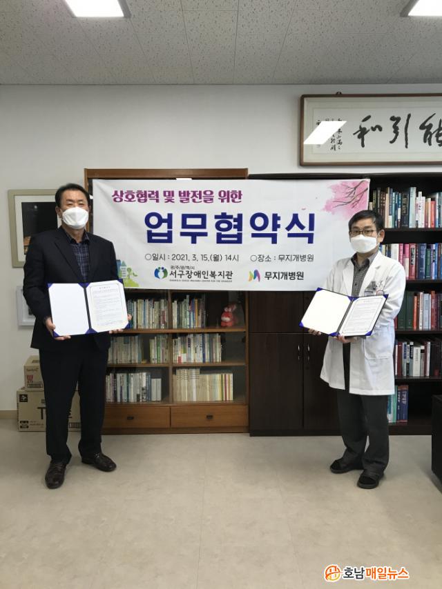 ÀÌ¿¡ À̴븸 °üÀåÀº ¡°Äڷγª19·Î ÀÎÇÏ¿© ¾î·Á¿î ½Ã±â¿¡ Áö¿ª ³» Àå¾ÖÀε鿡°Ô °Ç°Çϰí ÇູÇÑ »îÀ» Á¦°øÇÒ ¼ö ÀÖµµ·Ï Å« ÈûÀÌ µÇ¾î ÁØ ¹«Áö°³º´¿ø Ãø¿¡ °¨»çÀÇ ¸»¾¸À» ÀüÇϸç À̹ø Çù¾àÀ» ÅëÇÏ¿© Àå¾ÖÀÎÀÇ °Ç°¿¡ ´ëÇÑ ¿å±¸ ÁõÁø°ú »îÀÇ Áú Çâ»ó¿¡ ±â¿©ÇÒ ¼ö ÀÖÀ» °ÍÀ¸·Î ±â´ë µÈ´Ù¡± °í È´äÇß´Ù.