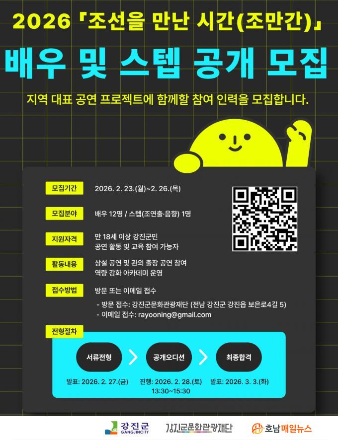 ¸ðÁý ÀοøÀº ¹è¿ì 12¸í°ú ½ºÅÂÇÁ(Á¶¿¬Ã⡤À½Çâ) 1¸í µî ÃÑ 13¸íÀ̸ç, °ø°íÀÏ ±âÁØ Áֹεî·Ï»ó ÁÖ¼ÒÁö°¡ °Áø±ºÀÎ ¸¸ 18¼¼ ÀÌ»ó ±º¹ÎÀ̸é Áö¿øÇÒ ¼ö ÀÖ´Ù.