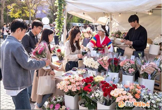 ¶ÇÇÑ °³¸·½Ä¿¡¼´Â °ü¶÷°´À» ´ë»óÀ¸·Î Àå¹Ì ¹«·á ³ª´® Çà»ç¸¦ ÁøÇàÇØ ÃàÁ¦ ºÐÀ§±â¸¦ ÇÑÃþ ²ø¾î¿Ã·È´Ù. Çà»çÀåÀ» ãÀº ¹æ¹®°´µé¿¡°Ô Àå¹Ì ÇÑ ¼ÛÀ̸¦ Àü´ÞÇÏ¸ç °Áø Àå¹ÌÀÇ ¾Æ¸§´Ù¿ò°ú Çâ±â¸¦ Á÷Á¢ üÇèÇÒ ¼ö ÀÖµµ·Ï Çß°í, ÀÚ¿¬½º·´°Ô Á÷°Å·¡ ÆÇ¸Å ºÎ½º·Î °ü½ÉÀÌ À̾îÁö´Â È¿°úµµ ³ªÅ¸³µ´Ù.