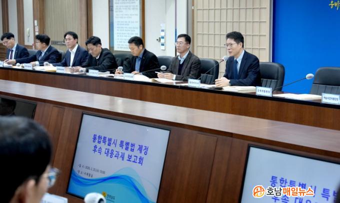 º¸°íȸ¿¡¼± ¿À´Â 7¿ù ´ëÇѹα¹ Á¦1È£ Àü³²±¤ÁÖÅëÇÕÆ¯º°½Ã Ãâ¹üÀ» ¾ÕµÎ°í, Ưº°¹ý Åë°ú¿¡ µû¸¥ ÈÄ¼Ó Á¶Ä¡¿Í ºÐ¾ßº° ½ÇÇà°èȹÀ» ±¸Ã¼ÈÇß´Ù.