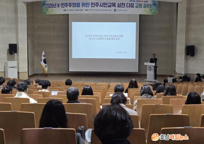 ±¤ÁÖ±¤¿ª½Ã±³À°Ã»Àº 26ÀÏ ±¤ÁֽùÎÇùÄ¡ÁøÈï¿ø ´ë°´ç¿¡¼ ÃÊ¡¤Áß¡¤°í¡¤Æ¯¼öÇб³ ¹ÎÁֽùα³À° ´ã´ç ±³¿ø 200¿© ¸íÀ» ´ë»óÀ¸·Î ¡®2026³â K-¹ÎÁÖÁÖÀǸ¦ À§ÇÑ ¹ÎÁֽùα³À° ½Çõ ´ÙÁü ±³¿ø °øÀ¯È¸¡¯¸¦ ¿°í ÀÌ·¯ÇÑ ³»¿ëÀ» ¾È³»Çß´Ù.