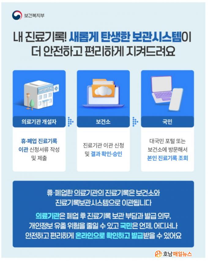 ÈÞ¡¤Æó¾÷ ÀÇ·á±â°ü Áø·á±â·Ïº¸°ü½Ã½ºÅÛÀº º´¡¤ÀÇ¿øÀÌ ¹®À» ´Ý¾Æµµ ȯÀÚÀÇ Áø·á±â·ÏÀ» ¾ÈÀüÇÏ°Ô º¸°üÇϰí, ÇÊ¿ä½Ã ¿Â¶óÀÎÀ¸·Î ¿¶÷Çϰųª »çº»À» ¹ß±Þ¹ÞÀ» ¼ö ÀÖµµ·Ï Áö¿øÇÏ´Â ¼ºñ½º´Ù. Áö³ÇØ 7¿ù 21ÀϺÎÅÍ º»°Ý ½ÃÇàµÆ´Ù.