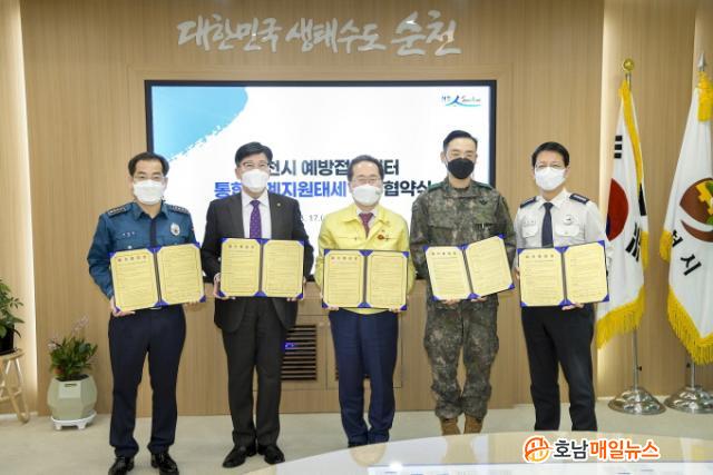 À̳¯ Çù¾à½ÄÀº Çã¼® ¼øÃµ½ÃÀåÀ» ºñ·ÔÇØ °í¿µÁø ¼øÃµ´ëÇб³ÃÑÀå, ÀåÅ¿õ À°±º7391-5ºÎ´ëÀå, Á¶¿µÀÏ ¼øÃµ°æÂû¼Àå, Çϼöö ¼øÃµ¼Ò¹æ¼ÀåÀÌ Âü¼®ÇÑ °¡¿îµ¥ Äڷγª19 ¹é½ÅÀÇ ¾ÈÀü°ü¸®¸¦ À§ÇØ »óÈ£ Àû±Ø ÇùÁ¶Çϱâ·Î ÇÏ¿´´Ù.