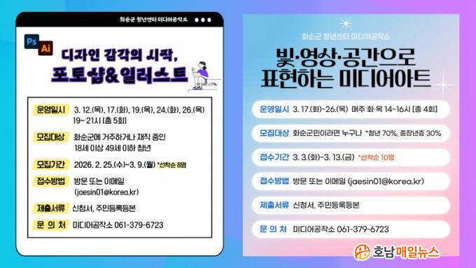 ¹Ìµð¾î¾ÆÆ® °úÁ¤Àº ȼø±º¹Î ´©±¸³ª ½ÅûÇÒ ¼ö ÀÖÀ¸¸ç, û³â 70%, ÁßÀå³â 30%¸¦ ¼±¹ßÇÑ´Ù. Á¢¼ö ±â°£Àº 3¿ù 13ÀϱîÁö´Ù. µÎ °úÁ¤ ¸ðµÎ ½Åû¼¿Í Áֹεî·Ïµîº»À» Á¦ÃâÇØ¾ß Çϸç, ȼø±º û³â¼¾ÅÍ ¹æ¹® ¶Ç´Â °ø½Ä ȨÆäÀÌÁö(https://www.hwasun.go.kr/youth)¸¦ ÅëÇØ ½ÅûÇÒ ¼ö ÀÖ´Ù.