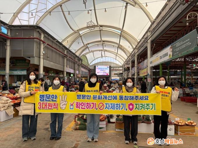ƯÈ÷ ¼³ ¿¬ÈÞ¸¦ ¾ÕµÐ 2¿ù 11ÀÏ ±¤¾çÀ¾ 5ÀϽÃÀå ÀÏ¿ø¿¡¼ º¸°Ç¼Ò Á÷¿ø 5¸íÀÌ Âü¿©ÇØ º´¹®¾È ¹®È°³¼± Ä·ÆäÀÎÀ» ÆîÄ¡¸ç, ½Ã¹Îµé¿¡°Ô º´¹®¾È ¹®È °³¼± 3´ë ¿øÄ¢ÀÎ ¡ãÈ®ÀÎÇϱâ(º´¹®¾È °¡´É ½Ã°£°ú Àå¼Ò È®ÀÎ) ¡ãÀÚÁ¦Çϱâ(ȯÀÚ¸¦ À§ÇØ º´½Ç ¸éȸ ÀÚÁ¦) ¡ãÁöÄÑÁÖ±â(¼Õ À§»ý, ±âħ ¿¹Àý µî ¿¹¹æ¼öÄ¢ Áؼö)ÀÇ ½ÇõÀ» ¾È³»Çß´Ù.