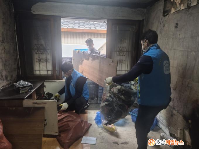 ºÀ»çÀÚµéÀº ÈÀç·Î ±×À»À½°ú ÀÜÇØ°¡ ³²¾Æ ÀÖ´Â ÁÖ°Å °ø°£À» û¼ÒÇÏ°í ºÒ¿¡ ź »ýȰÆó±â¹°À» Á¤¸®ÇßÀ¸¸ç, ÀÀ±Þ±¸È£¼¼Æ®¿Í À̺Ò, ½Ä·áǰ µî ±ä±Þ »ýÇÊǰµµ ÇÔ²² Àü´ÞÇß´Ù.