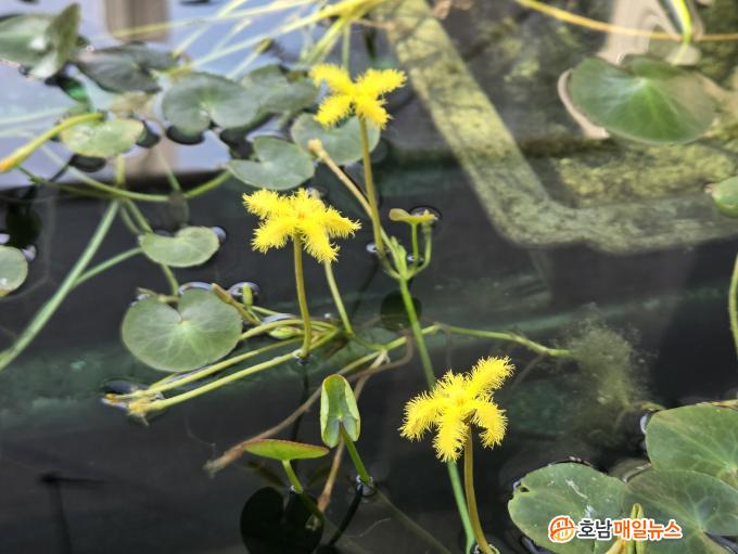 °ø¿ø ³» ¼ö»ý½Ä¹° Àü½Ã°ü¿¡¼´Â ³ë¶û¾î¸®¿¬ÀÌ ¹°¼Ó¿¡¼ Á¶¿ëÈ÷ ²ÉÀ» ÇÇ¿ö, ÀÛÀº ¼öÁß ÇØ¹Ù¶ó±âó·³ ºû³ª´Â ¸ð½ÀÀ¸·Î °ü¶÷°´ÀÇ ´«±æÀ» ²ø°í ÀÖ´Ù.