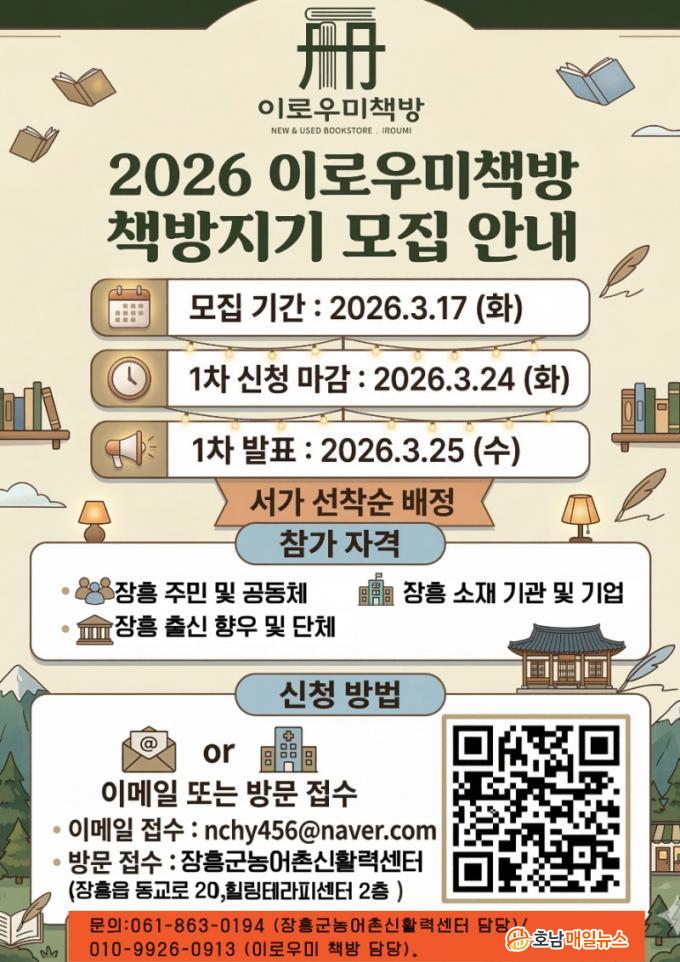 ¸ðÁý ±â°£Àº 3¿ù 17ÀÏ(È)ºÎÅÍ 4¿ù 13ÀÏ(¿ù)±îÁö¸ç, ½Åû ¼ø¼¿¡ µû¶ó ¼°¡°¡ ¹èÁ¤µÇ´Â ¼±Âø¼ø ¹æ½ÄÀÌ´Ù. ½Åû ¾ç½ÄÀº ÀåÈﱺû ȨÆäÀÌÁö °øÁö»çÇ× ¶Ç´Â ÀåÈﱺ³ó¾îÃ̽ÅȰ·Â¼¾ÅÍ È¨ÆäÀÌÁö(http://maeuljh.kr/)¿¡¼ ´Ù¿î·ÎµåÇÒ ¼ö ÀÖ´Ù. ÁֹΠÆíÀǸ¦ À§ÇØ QRÄڵ带 ÅëÇØ °£ÆíÇÏ°Ô ÁøÇàÇÒ ¼ö ÀÖ´Ù.