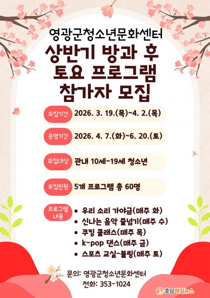 ¸ðÁý ´ë»óÀº ¿µ±¤±º °ü³» 10¼¼ºÎÅÍ 19¼¼±îÁö û¼Ò³âÀ̸ç, ÃÑ 60¸íÀ» ¸ðÁýÇÑ´Ù. Âü°¡ºñ´Â ÀϺΠ¹«·á·Î ¿î¿µµÇ¸ç, ½ÅûÀº ³×À̹ö ÆûÀ» ÅëÇÑ ¿Â¶óÀÎ Á¢¼ö·Î °£ÆíÇÏ°Ô ÁøÇàµÈ´Ù.
