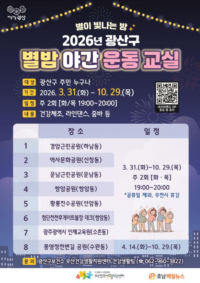 º°¹ã¾ß°£¿îµ¿±³½ÇÀº ³²³à³ë¼Ò ´©±¸³ª ¹«·á·Î Âü¿©ÇÒ ¼ö ÀÖ´Â °Ç° üÁ¶·Î, ±¤»ê±¸ 8°³ °ø¿ø¿¡¼ È¿äÀϰú ¸ñ¿äÀÏ ÁÖ 2ȸ ¿ÀÈÄ 7½ÃºÎÅÍ 8½Ã±îÁö ÁøÇàÇÑ´Ù.