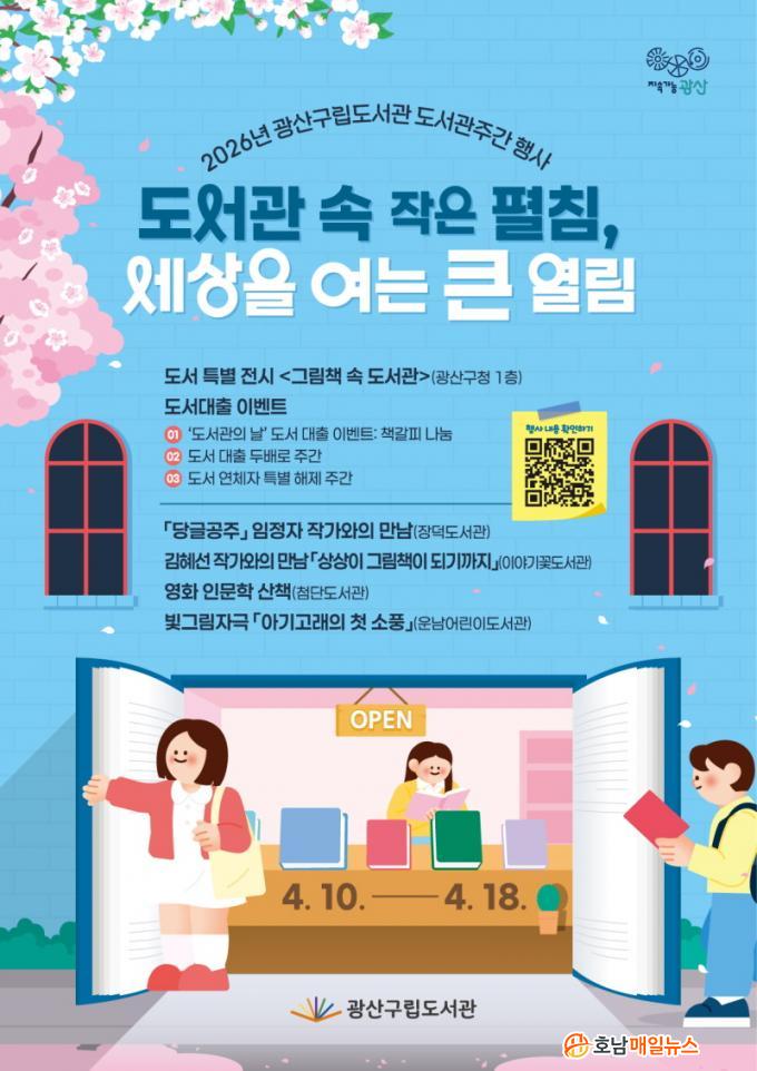 4¿ù 12ÀÏ µµ¼°üÀÇ ³¯ µµ¼ ´ëÃâ Çà»çÀÎ ¡®Ã¥°¥ÇÇ ³ª´®¡¯À» ºñ·ÔÇØ µµ¼°üÁÖ°£ µ¿¾È µµ¼ ´ëÃ⠱Ǽö¸¦ 2¹è·Î È®´ëÇϰí, µµ¼ ¿¬Ã¼ÀÚ Æ¯º° ÇØÁ¦µµ ½ÃÇàµÈ´Ù. µµ¼°üÁÖ°£ Çà»ç¿Í °ü·ÃÇÑ ÀÚ¼¼ÇÑ ÀÏÁ¤°ú Âü¿© ¹æ¹ýÀº ±¤»ê±¸ÅëÇÕµµ¼°ü´©¸®Áý(https://lib.gwangsan.go.kr/main)¿¡¼ È®ÀÎÇÒ ¼ö ÀÖÀ¸¸ç, °ü·Ã ¹®ÀÇ´Â ±¤»ê±¸ ±³À°µµ¼°ü°ú(062-960-3669)·Î ¹®ÀÇÇÏ¸é µÈ´Ù.