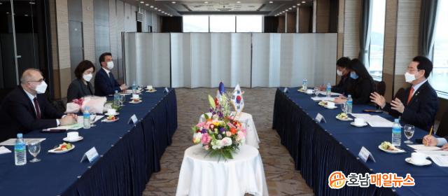 ÇÑÆí, Àü³²µµ´Â À̹ø ¸é´ã¿¡¼ ³íÀÇµÈ ³»¿ë¿¡ ´ëÇØ °ü·Ã Àü¹®°¡ µî°ú ÀǰßÀ» ¼ö·ÅÇÑ ÈÄ ÁÖÇÑ ÇÁ¶û½º´ë»ç°ü°ú Çù·ÂÇØ ±³·ù È®´ë¿¡ Àû±Ø³ª¼³ °èȹÀÌ´Ù.