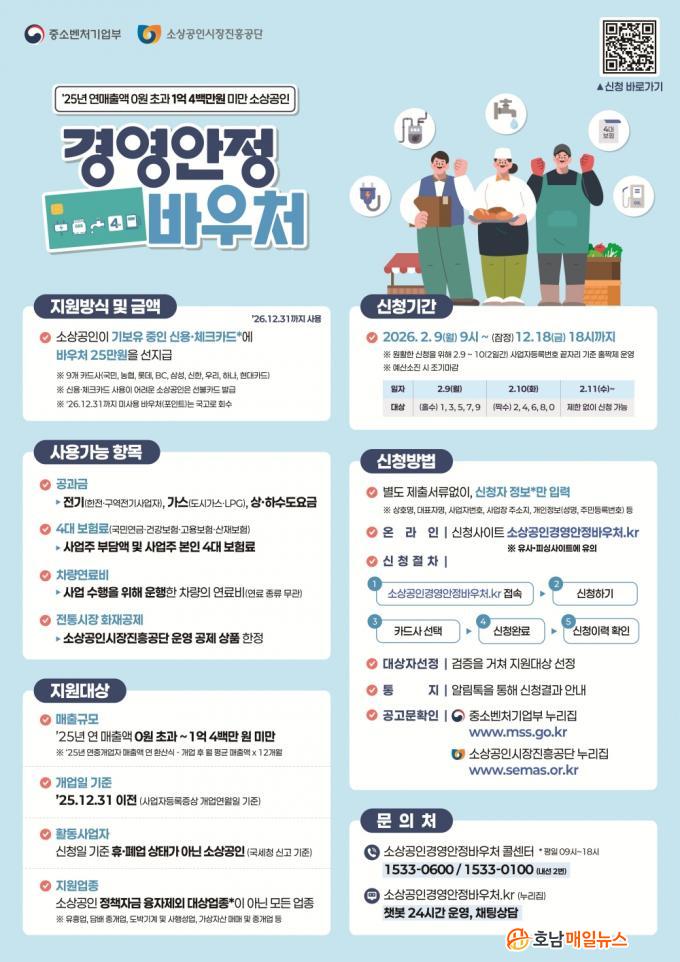 Áö¿ø ´ë»óÀº 2025³â ±âÁØ ¿¬ ¸ÅÃâ¾× 1¾ï 4¹é¸¸¿ø ¹Ì¸¸ÀÇ ¼Ò»ó°øÀÎÀ¸·Î, ½ÅûÀÏ ±âÁØ Á¤»ó ¿µ¾÷ ÁßÀÎ »ç¾÷ÀÚ¶ó¸é ´ëºÎºÐ ½ÅûÀÌ °¡´ÉÇÏ´Ù. ¾÷Á¾ Á¦ÇÑÀÌ ÀϺΠÀÖÀ¸³ª ÀϹÝÀûÀÎ ÀÚ¿µ¾÷ÀÚ´Â Æø³Ð°Ô Áö¿ø ´ë»ó¿¡ Æ÷ÇԵǾî Á¤Ã¥ ü°¨µµ¸¦ ³ô¿´´Ù.