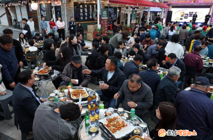¸Ô°Å¸® ºÎ¹®¿¡¼µµ Çà»çÀå ¿±â´Â ¶ß°Å¿ü´Ù. ÇöÀå¿¡¼´Â ºÒÇâ°¡µæ ¿¬ÅººÒ°í±â°¡ ¹æ¹®°´µéÀÇ ÀÔ¸ÀÀ» »ç·ÎÀâÀ¸¸ç ³ôÀº Àα⸦ ²ø¾ú´Ù. ¿¬ÅººÒ ƯÀ¯ÀÇ ±íÀº dz¹Ì¿Í µû¶æÇÑ ¸Ô°Å¸®´Â Çà»çÀåÀ» ãÀº ¹æ¹®°´µé¿¡°Ô Å« ¸¸Á·À» ¾È°å°í, ½ÇÁ¦ ÆÇ¸Å ¸ÅÃâ·Îµµ À̾îÁö¸ç Áö¿ª»ó±Ç Ȱ¼ºÈ¿¡µµ ±àÁ¤ÀûÀÎ ¼º°ú¸¦ º¸¿´´Ù. °¡Á· ´ÜÀ§ ¹æ¹®°´°ú °ü±¤°´µéÀº °ø¿¬°ú ÇÔ²² ´Ù¾çÇÑ ¸Ô°Å¸®¸¦ Áñ±â¸ç °Áø¸¸ÀÇ Á¤°Ü¿î ¹ã¹®È¸¦ üÇèÇß´Ù.