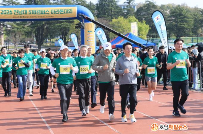 5ÀÏ Àü³²´ëÇб³¿¡ µû¸£¸é, °³±³ ÀÌ·¡ óÀ½À¸·Î ¿¸° ¡®518Ä·ÆÛ½º ¸¶¶óÅæ´ëȸ¡¯´Â Çà»çÀå ÀÏ´ë°¡ Âü°¡ÀÚ¿Í ½Ã¹Îµé·Î ºÏÀûÀÌ¸ç ¶ß°Å¿î ¿±â ¼Ó¿¡ ÁøÇàµÆ´Ù. Ãâ¹ß¿¡ ¾Õ¼ Àü³²´ëÇб³ À½¾Ç±³À°Çаú Áßâ´ÜÀÌ ¡®ÀÓÀ» À§ÇÑ ÇàÁø°î¡¯À» ºÎ¸£¸ç ´ëȸÀÇ ½ÃÀÛÀ» ¾Ë·È°í, 5¡¤18ÀÇ Á¤½ÅÀ» µÇ»õ±â´Â »ó¡ÀûÀÎ ¼ø°£ÀÌ ¿¬ÃâµÆ´Ù.